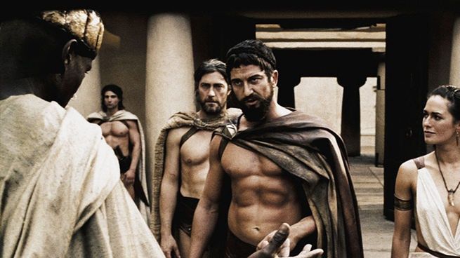 W filmie Leonidas, król Sparty, przewodzi elitarnej grupie żołnierzy walczącej ze znacznie większą armią Kserksesa I z Persji. Gerard Butler zagrał Leonidasa, a Rodrigo Santoro wcielił się w rolę Kserksesa. W obsadzie znaleźli się także Lena Headey, David Wenham, Dominic West, Vincent Regan, Tom Wisdom i Michael Fassbender. Obraz okazał się ogromnym sukcesem generując ponad 450 mln dolarów zysku na całym świecie przy budżecie wynoszącym około 65 mln dolarów. Zainspirował również liczne parodie, w tym „Poznaj moich Spartan” z 2008 roku oraz odcinek „South Park” zatytułowany „D-Yikes!”.