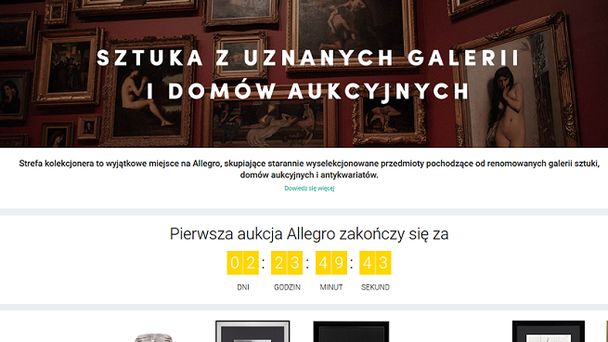 Allegro uruchomiło też dział Strefa Kolekcjonera, w którym trwa obecnie pierwsza edycja licytacji dzieł sztuki. Oferowane są takie dzieła jak „Twarz” Igora Mitoraja, „Jan III Sobieski pod Wiedniem” Juliusza Kossaka, drzeworyt Jana Matejko, zabytkowe polskie szable kawaleryjskie i legionowe, cenne obrazy Wygrzywalskiego i Władysława Wankie oraz szkice Kantora i Nikifora.