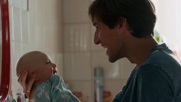 W spocie z akcji pokazywana jest codzienność mężczyzny opiekującego się swoim malutkim dzieckiem. Dzięki aplikacji mobilnej Allegro bohater zamawia golarkę elektryczną i goli zarost, dzięki czemu kiedy znów bierze bobasa na ręce i przytula, ten już nie płacze.