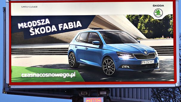 Na nośnikach reklamujących Škodę Fabia specjalne oświetlenie zamontowano w przednich światłach wizerunku auta, co imituje prawdziwy reflektor samochodowy. Plakaty są elementem rozpoczętej pod koniec stycznia kampanii pod hasłem „Czas na coś nowego” (zobacz więcej).