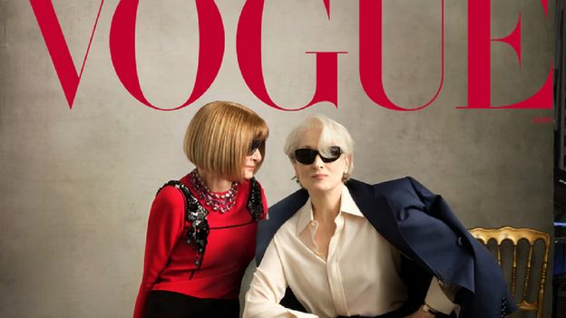 Jak opisuje "The Guardian", to pierwsza sytuacja, gdy szefowa globalna treści Condé Nast i global editorial director "Vogue'a" umieściła siebie w roli bohaterki okładki magazynu. Wcześniej Wintour gościła w branżowych tytułach (np. w 1993 r. w "Interview" i w 2017 r. w "Ad Week"), ale nigdy na okładce "Vogue". Redakcja wskazuje, że na wspólnej okładce obie - Wintour i Streep - występują w kreacjach marki Prada, co dodatkowo łączy przekaz z filmowym uniwersum.