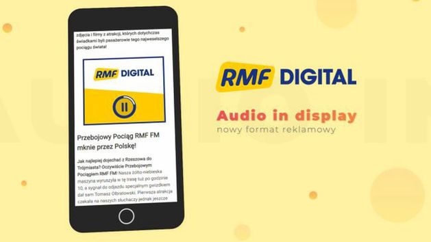 Nowy format pozwala na dodanie dowolnego pliku dźwiękowego do klikanej kreacji graficznej. Dźwięk uruchamiany jest przez użytkownika poprzez naciśnięcie przycisku playera. Dźwiękiem może być spot reklamowy, jingiel, muzyka czy komunikat tekstowy. - Audio in Display to oryginalne rozwiązanie, angażujące użytkowników zarówno obrazem jak i dźwiękiem - ocenia Tomasz Ramza, dyrektor generalny działu sprzedaży Grupy RMF.