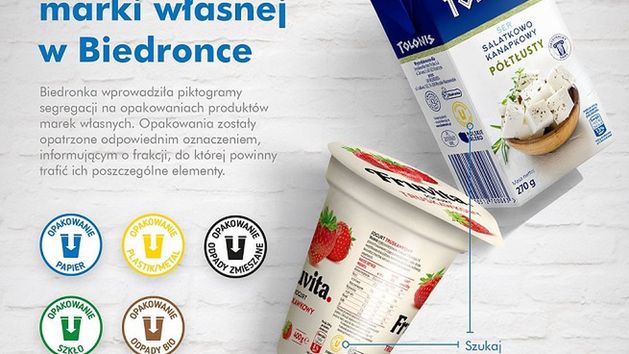 Aby zachęcić klientów do segregacji odpadów i ułatwić im troskę o środowisko, sieć Biedronka stopniowo wprowadza piktogramy segregacji na opakowaniach produktów swoich marek własnych. Opakowania są opatrzone odpowiednim oznaczeniem, informującym o kolorze pojemnika na odpady, do którego powinny trafić ich poszczególne elementy. To kolejny krok Biedronki przyczyniający się do kształtowania ekologicznych postaw wśród klientów sieci.
