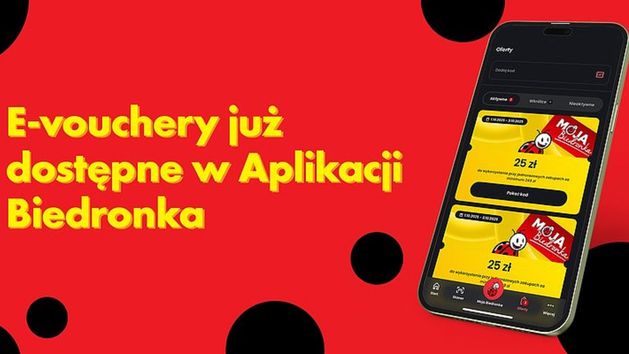 Biedronka wprowadziła e‑vouchery jako dobrowolną funkcję w aplikacji Moja Biedronka. Po aktywacji użytkownik widzi swoje kupony w zakładce "Oferty" i może okazać je przy kasie. Rozwiązanie ma uporządkować zniżki i ułatwić korzystanie z promocji podczas codziennych zakupów.
