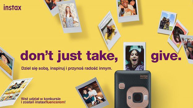 Konkurs „Don’t just take, give.” dotyczy marki instax dla Fujifilm, w ramach której komunikowane są produkty takie jak aparaty: Mini9, mini Liplay SQ6, drukarka minilink.