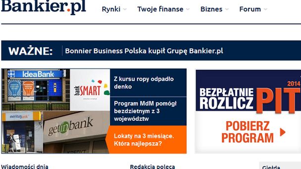 - Po połączeniu sił Bonnier Business Polska i Bankiera powstanie wiodący podmiot na rynku mediów finansowych, zbudowany na dwóch najmocniej rozpoznawalnych markach na rynku - zapowiada Przemysław Barankiewicz, redaktor naczelny PB.pl, kierujący tą transakcją ze strony Bonnier Business Polska. - Bankier zawsze imponował nam zdolnością do generowania ruchu i pozycją lidera wśród internautów-inwestorów - dodaje.