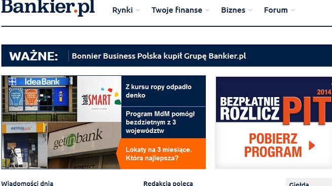 W wyniku akwizycji Bonnier Business Polska przejmuje całkowitą kontrolę grupą serwisów Grupy Bankier.pl, do której należą takie serwisy jak Bankier.pl, PRnews.pl, Twoja-firma.pl, PIT.pl, VAT.pl, 24.pl i MamBiznes.pl oraz finansowa sieć afiliacyjna SystemPartnerski.pl.