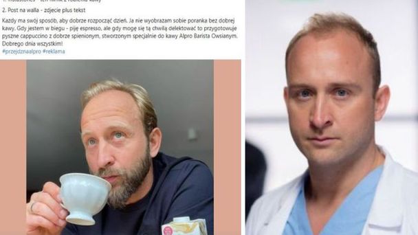Poniedziałek, 26 września, godz. 11:25. "Dzień dobry, przypominam że dzisiaj dzisiaj publikacji alrpo. Wrzucamy: 1. Instastories - ten filmik z robienia kawy; 2. Post na walla - zdjecie plus tekst" (pisownia oryginalna - przyp. red.) - to początek wpisu Borysa Szyca na Facebooku. Dalej jest już właściwa treść, która miała się znaleźć w poście. Brzmi tak: "Każdy ma swój sposób, aby dobrze rozpocząć dzień. Ja nie wyobrażam sobie poranka bez dobrej kawy. Gdy jestem w biegu - piję espresso, ale gdy mogę się tą chwilą delektować, to przygotowuje pyszne cappuccino z dobrze spienionym, stworzonym specjalnie do kawy Alpro Barista Owsianym. Dobrego dnia wszystkim!". Do wpisu dołączone jest zdjęcia aktora, który trzyma w dłoni filiżankę, obok widać opakowanie reklamowanego napoju.