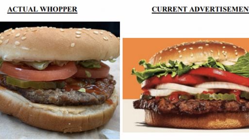 Pozew przeciwko sieci został złożony przez 19 klientów z 13 stanów USA. Powodowie twierdzą, że materiały reklamowe Burger Kinga sprawiają wrażenie, że burgery są o 35 proc. większe i zawierają dwukrotnie więcej mięsa niż w rzeczywistości. Jako dowód powódki przytoczyły fotografie, na których prawdziwe burgery wyglądają znacznie skromniej niż w reklamie.