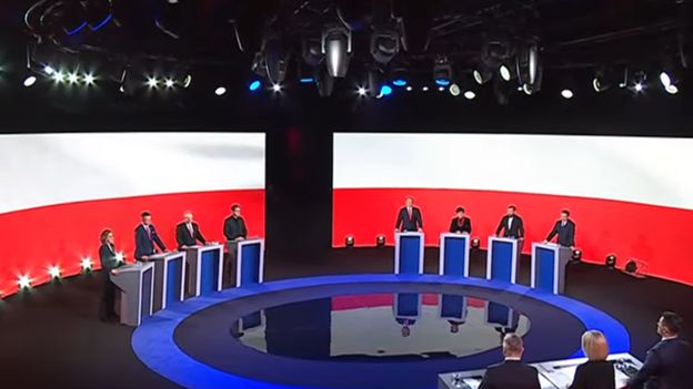 Przez kilkanaście minut losowano kolejność wystąpień poszczególnych kandydatów. Tuż obok sceny, na której odbywa się debata, znaleźli się członkowie Klubów Gazety Polskiej. Podczas wypowiedzi Hołowni i Senyszyn sympatycy Prawa i Sprawiedliwości buczeli na kandydatów. Katarzyna Gójska zaapelowała do publiczności, żeby dała się wypowiedzieć politykom, mimo różnych poglądów. Krzysztof Stanowski nie udzielał merytorycznych odpowiedzi, swój antenowy czas wykorzystywał m.in. do robienia żartów i ironicznych uwag, ataków na TVP i innych polityków.