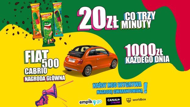 Producent informuje, że co trzy minuty można wygrać 20 zł, raz dziennie 1000 zł, a nagrodą główną w loterii jest samochód Fiat 500 Cabrio. Klienci, który kupią lody mogą też skorzystać z jednej z trzech nagród gwarantowanych.