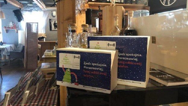 Klienci mogą zostawić swoje urządzenia mobilne w specjalnej skrzynce przed posiłkiem. Cel? Skupienie się na interakcji z innymi ludźmi, z którymi przychodzimy do knajpy i oderwanie się od świata cyfrowego. Czas mogą też poświęcić na wypisanie kartek świątecznych, udostępnionych w restauracji.