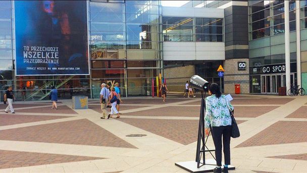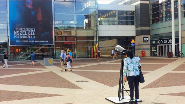 Naprzeciwko wielkoformatowego wydruku stanęła również specjalna luneta umożliwiająca pełen odczyt obrazu. Na terenie Łodzi pojawiły się także specjalne okulary do oglądania przenikających się grafik i kartki pocztowe z motywem kobiety i mężczyzny, informujące o modernizacji.