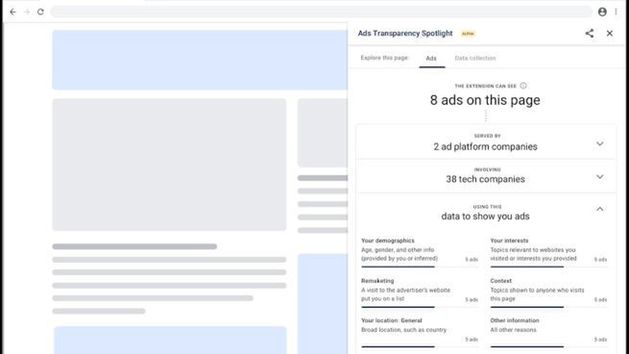 Teraz Google poinformował o udostępnieniu przeznaczonego do Chrome dodatku o nazwie Ads Transparency Spotlight, który można zainstalować w przeglądarce za pośrednictwem platformy Chrome Web Store.