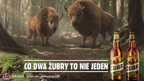 Nowy animowany spot piwa Żubr pokazuje, jak charakterystyczny dla tej marki żubr próbuje podważyć konar przewróconego drzewa, żeby pomóc warchlakowi wydostać się z głębokiego dołu. Udaje się to dopiero, gdy z pomocą przychodzi drugi żubr, co podsumowuje slogan: „Co dwa Żubry, to nie jeden”.