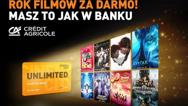 Credit Agricole zorganizuje także w kinach Cinema City eventy, podczas których będzie można poznać szczegóły i przystąpić do akcji promocyjnej, zyskując abonament Unlimited.