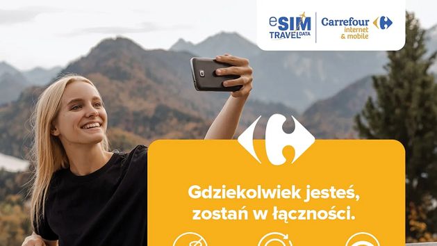 Nowy produkt w sklepach Carrefour - eSIM Travel Data, dedykowany jest klientom podróżującym poza granice kraju. Dzięki tej usłudze nie ma już potrzeby fizycznego wkładania kart SIM do telefonu – urządzenie łączy się z siecią komórkową tak, jakby w nim była zwykła karta SIM.