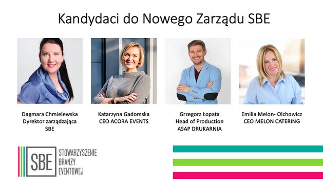 Nowy zarząd wybrano podczas walnego zebrania członków Stowarzyszenia Branży Eventowej. Dotychczas w skład zarządu wchodzili Marta Chmielewska (prezes zarządu), Żaneta Berus (członek zarządu), Renata Razmuk (członek zarządu).