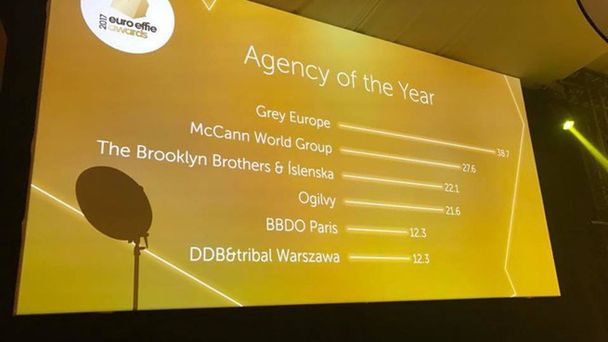 Agencją Roku została agencja Grey Europe, która otrzymała łącznie 8 nagród: 4 złote, 3 srebrne i 1 brązową.Grand Prix Euro Effie 2017 trafiło do agencji McCann z Wielkiej Brytanii za kampanię „Kevin the Carrot - Making Christmas Amazing” dla sieci sklepów Aldi w Wielkiej Brytanii.