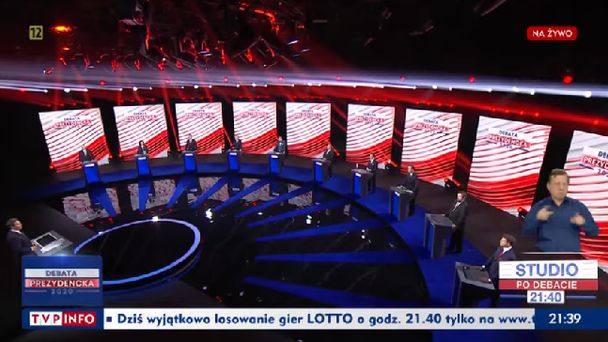 W debacie wyborczej wzięło udział 10 kandydatów na prezydenta: urzędujący prezydent Andrzej Duda (popiera go Zjednoczona Prawica), Małgorzata Kidawa-Błońska (Koalicja Obywatelska), Władysław Kosiniak-Kamysz (PSL), Robert Biedroń (Lewica), Krzysztof Bosak (Konfederacja), Szymon Hołownia, Paweł Tanajno, Mirosław Piotrowski, Marek Jakubiak i Stanisław Żółtek. Przeprowadzenie debaty przed wyborami prezydenckimi jest ustawowym obowiązkiem Telewizji Polskiej.