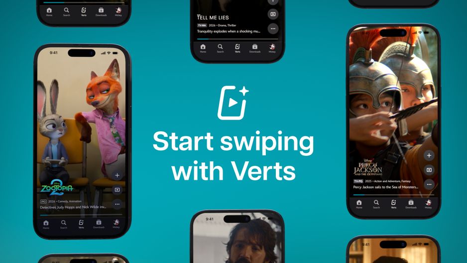 Równolegle w USA Disney+ udostępnia Verts — nowy sposób odkrywania treści w pionowym układzie znanym z mediów społecznościowych. Ikona Verts w pasku nawigacji mobilnej otwiera strumień fragmentów filmów oraz seriali. Użytkownik może dodać tytuł do listy lub przejść bezpośrednio do odtwarzania.