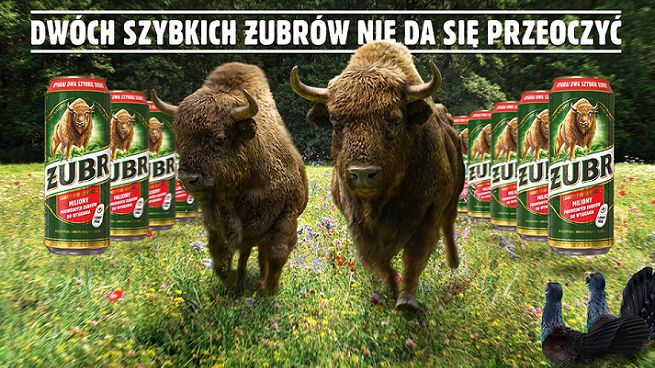 Działania reklamujące piwo Żubr obejmują m.in. telewizję, internet oraz outdoor.