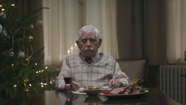 Staruszek w tej sytuacji święta Bożego Narodzenia spędza samotnie. W kolejnej scenie reklamy widzimy dzieci tego mężczyzny, które odbierają wiadomość, że ich ojciec nie żyje. Wszyscy udają się do jego domu i ku ich zaskoczeniu widzą ojca żyjącego, który pyta ich retorycznie: „Jak inaczej mógłbym was wszystkich zebrać razem?”.