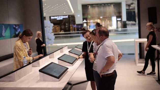 Wybrany towar klient może zamówić za pomocą znajdujących się w sklepie tabletów lub własnego urządzenia mobilnego.