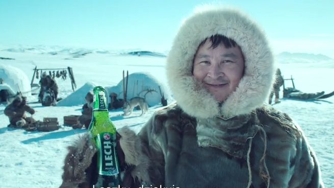 W spocie Eskimosi opowiadają o podróżniku Leszku Chmielewskim, który pokazał im, jak chłodzić piwo Lech w pokruszonym lodzie. Ma to symbolizować, że promowana marka - zgodnie z hasłem kampanii - pozytywnie wpływa na wszystkich.