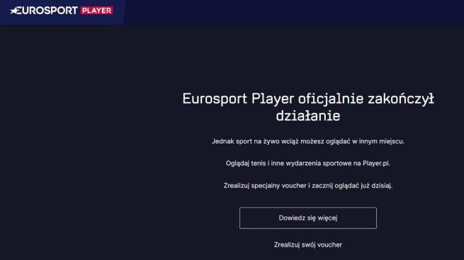 - Eurosportplayer.pl i aplikacja Eurosport Player kończą działalność. Możesz nadal cieszyć się treściami sportowymi z Eurosportu w serwisie Player.pl. Koniec działania Eurosport Playera w Polsce oznacza, że od teraz w jednym serwisie streamingowym otrzymasz dostęp zarówno do treści rozrywkowych, jak i sportu, który kochasz. Nadal będziesz mógł cieszyć się wszystkimi naszymi artykułami sportowymi na Eurosport.pl, z mnóstwem najnowszych wiadomości, wyników i artykułów sportowych, ale płatne treści wideo nie będą już dostępne - informuje serwis streamingowy Warner Bros. Discovery.