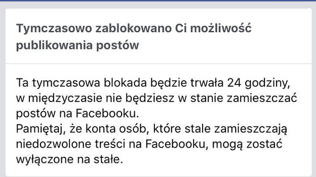 Strony na Facebooku należące do prawicowych organizacji, takich jak Marsz Niepodległości, Młodzież Wszechpolska, Obóz Narodowo-Radykalny i Ruch Narodowy zostały zablokowane w ubiegłym tygodniu. Na kontach był wcześniej promowany Marsz Niepodległości przygotowywany przez środowiska narodowe na 11 listopada br. w Warszawie.