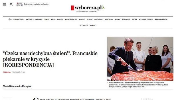 Tekst Marty Kiełczewskiej-Konopka dotyczył przyszłości francuskich piekarń, które masowo bankrutują z powodu wysokich cen zbóż i energii. Autorka cytowała wypowiedzi francuskich przedsiębiorców i klientów, a z kontekstu wynikało, ze to ona sama z nimi rozmawiała i docierała do źródeł.