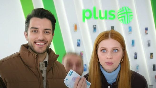 W najnowszym spocie Plusa występuje trójka sprzedawców – Anna Smołowik, Wojciech Mecwaldowski i Filip Orliński oraz dwójka klientów.