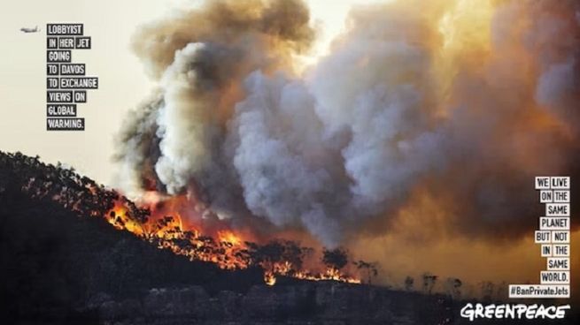 To przesłanie zajmuje centralne miejsce w kampanii stworzonej pro bono przez TBWA Paris, która wyraźnie potępia korzystanie z prywatnych odrzutowców przez niezwykle bogatych i wpływowych lobbystów i szefów korporacji podróżujących do szwajcarskiego luksusowego ośrodka narciarskiego Davos na Światowe Forum Ekonomiczne (WEF ), które właśnie się rozpoczęło (trwa od 16 do 20 stycznia br.).