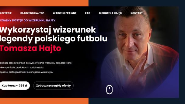 Dalej były piłkarz zachęca: "Kupując prawa do wizerunku Tomasza Hajto, otrzymujesz legalny i czasowy dostęp do wizerunku jednej z najbardziej rozpoznawalnych postaci polskiego futbolu i popkultury. To nie tylko licencja – to narzędzie, które wzmacnia przekaz Twojej marki, przyciąga uwagę i budzi emocje".