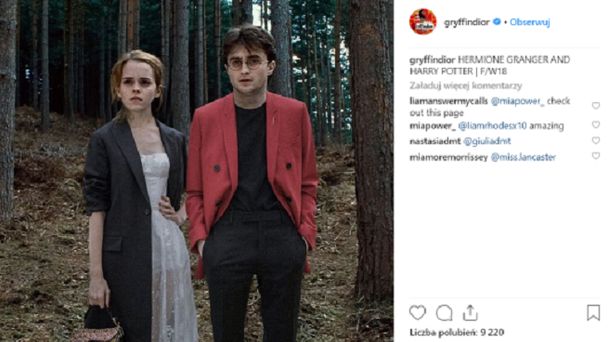 Na profilu Gryffindoru w stylizacjach Diora występują aktorzy znani z filmowych ekranizacji prozy J.K. Rowling. Mamy więc Daniela Radcliffe'a, tytułowego Harrego Pottera, w marynarce Diora czy Emmę Watson jako Hermionę Granger w szykownej sukience czy dżinsowej kurtce i topie. Draco Malfoy występuje we fraku, a Albus Dumbledore w luźnej, sportowej stylizacji.