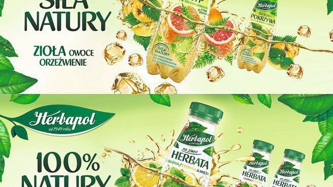 Druga linia kreatywna „100% Natury” będzie wspierać napoje herbaciane Herbapol na zimno w trzech wariantach: na bazie herbaty czarnej o smaku brzoskwiniowym i cytrynowym oraz na bazie herbaty zielonej o smaku cytryny z miętą.