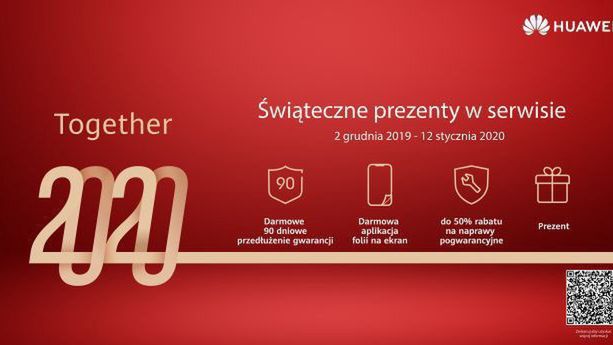 W ramach promocji użytkownicy którzy między 20 grudnia 2019 a 3 stycznia 2020 r. skorzystają z montażu bezpłatnej folii ochronnej lub naprawią urządzenie w autoryzowanym serwisie Huawei otrzymają prezent – ładowarkę, kabel USB oraz selfie stick. Huawei zastrzega że liczba prezentów jest ograniczona.
