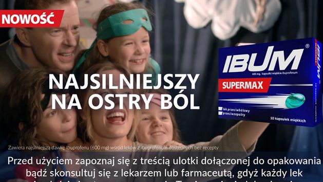 Reklama podkreśla, że Ibum Supermax z potrójną siłą uderza w ból. Dlaczego? Jedna kapsułka produktu zawiera 600 mg ibuprofenu, podczas gdy w standardowej wersji Ibum jest to 200 mg.