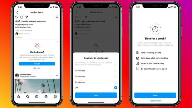 Jeżeli użytkownik będzie przeglądać Instagrama przez dłuższy, określony czas, aplikacja poprosi go o zrobienie sobie przerwy. Dodatkowo, zaproponuje ustawienie przypomnień, aby internauta zawsze pamiętał o robieniu przerw. Przedstawi mu również wskazówki ekspertów pomagające oderwać się od sieci i zrelaksować.