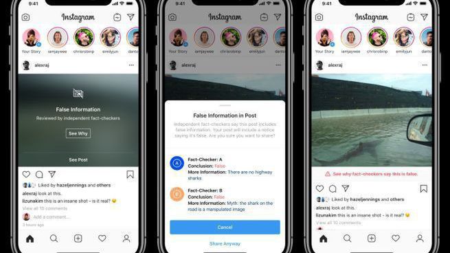 W grudniu ub.r. Instagram zapowiedział, że wkracza w nowy etap walki z fake newsami. Treści zawierające dezinformacje wykryte przez organizacje typu fact-checkers zyskały odpowiednie oznaczenia ostrzegające przed tym, że stanowią fake newsy.