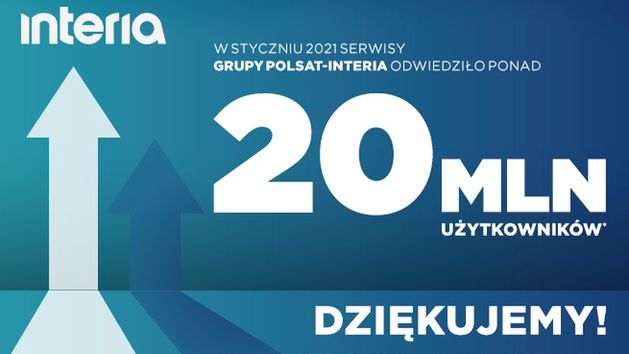 Według badania Mediapanel w styczniu 2021 r. strony i aplikacje całej Grupy Polsat-Interia przyciągnęły 20,1 mln realnych użytkowników, którzy wygenerowali 1,71 mld odsłon.