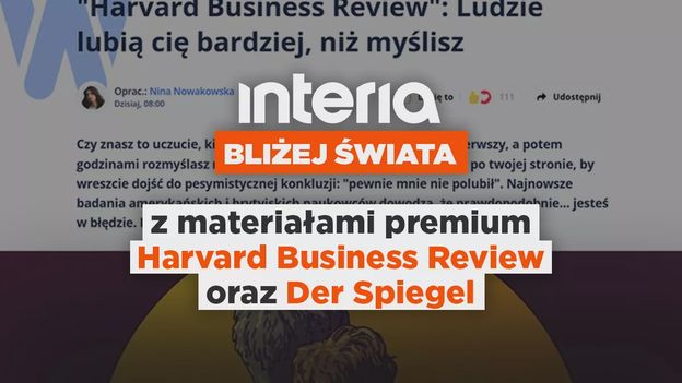 Interia i materiały premium z zagranicy Premiera pierwszego artykułu z Harvard Business Review w Interii 30 maja. Materiał „Ludzie lubią cię bardziej, niż myślisz” to efekt współpracy amerykańskich i brytyjskich naukowców, którzy wyjaśniają dynamikę i proces budowania relacji w nowoczesnych społeczeństwach. Ich wnioski pozytywnie zaskakują.