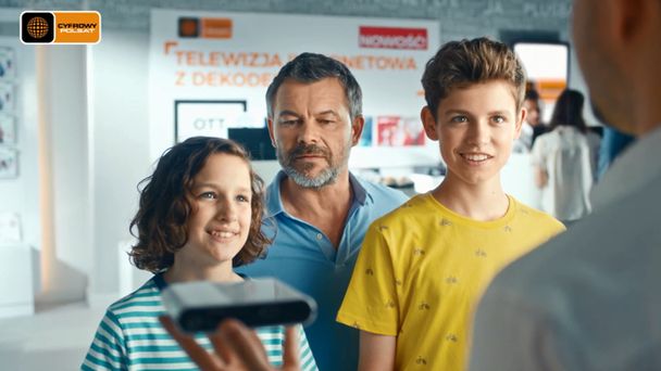 W spocie reklamowym Jacek Braciak wciela się w ojca rodziny, która odwiedza salon Cyfrowego Polsatu i zapoznaje się z nową ofertą.