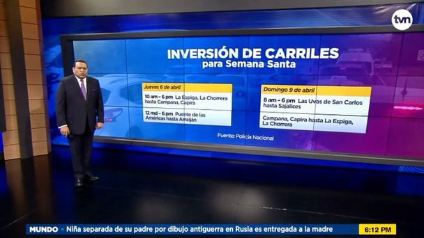 W polskiej telewizji był on emitowany w latach 2005-2011 w TVN, a od 2014 roku w Polsacie. Zamiast "Faktów" w kraju łączącym Amerykę Północną z Południową nadawane są „Wiadomości” TVN. Pełna nazwa stacji z Panamy to Televisora Nacional. Najczęściej korzysta jednak ze skrótu TVN.