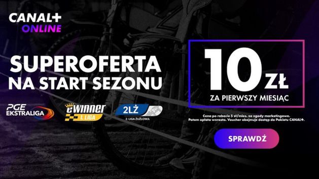 Standardowa cena za pakiet Canal+ na platformie Canal+ online to 45 zł miesięcznie. Fani żużla mogą skorzystać z oferty promocyjnej do 10 kwietnia br. Po raz pierwszy w historii mecze wszystkich szczebli rozgrywkowych – PGE Ekstraligi, eWinner 1. Ligi oraz 2. Ligi Żużlowej – będzie można oglądać w Canal+ online.