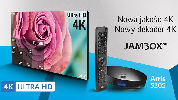 Nowy dekoder Jambox - o nazwie Arris 5305 4K - działa on w oparciu o autorskie oprogramowanie Kyanit. Pozwala on na wyświetlanie obrazu w technologii 4K, czyli 4-krotnie większej rozdzielczości od Full HD.
