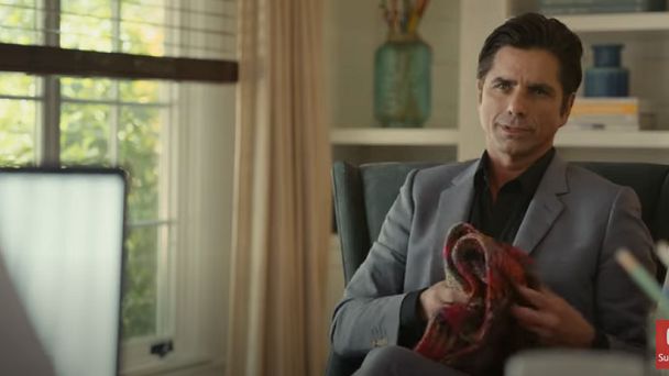 "Więc na co czekasz? Żeby John Stamos zrobił ci szalik? John Stamos, żeby zrobić ci szalik? pyta lektor. Wtedy aktor faktycznie rzuca bohaterce spotu gotowy szalik i pokazuje kłębek włóczki i druty, którymi go rzekomo zrobił.