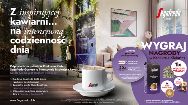 Aby wziąć udział w konkursie należy kupić dowolną kawę Segafredo Caffè Crema i zarejestrować się na stronie segafredo.club/pl.