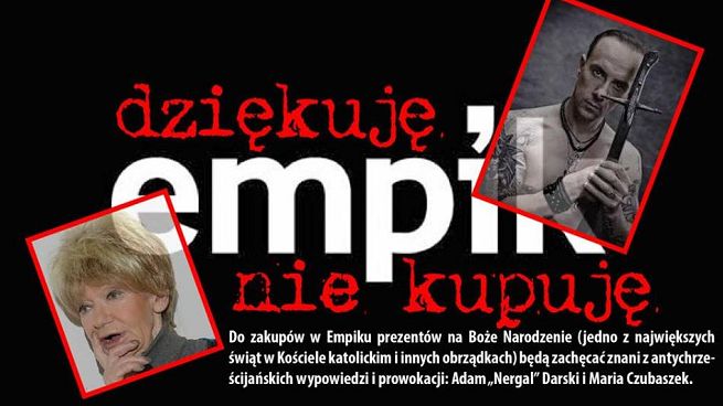 Udział satyryczki i muzyka w świątecznych spotach nie spotkał się również z aprobatą części klientów sieci. Swoje niezadowolenie wyrazili oni na fanpage’u Empiku. - Nie wejdę do waszego sklepu póki nie wycofacie tych reklam. Tradycja prezentów jest ściśle związana z naszym chrześcijańskim świętem - napisał Sławomir Jan Nadolski. - Idę do konkurencji - nie dają głupich reklam - zadeklarował Paweł Drzewiecki. - Nie wiem, kto jest autorem pomysłu na kampanię, ale jeśli w Empiku uznajecie za swój standard „Nieważne jak, ale ważne by o nas mówiono” to sorry - wybieram inne księgarnie - stwierdziła Natalia Kalinowska.